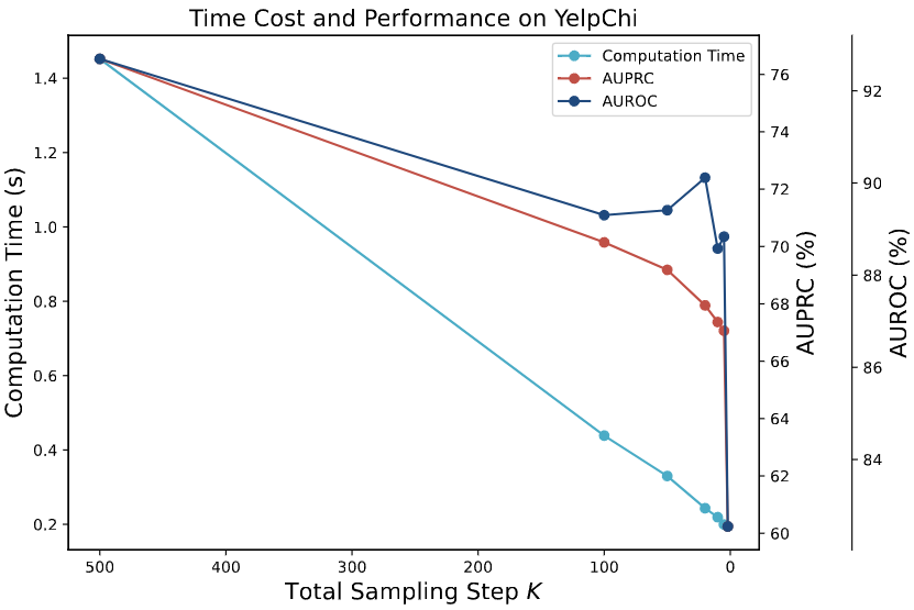 Figure 4: Time cost and Accuracy w.r.t. Sampling Steps K
